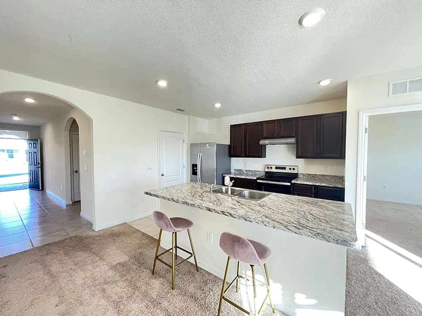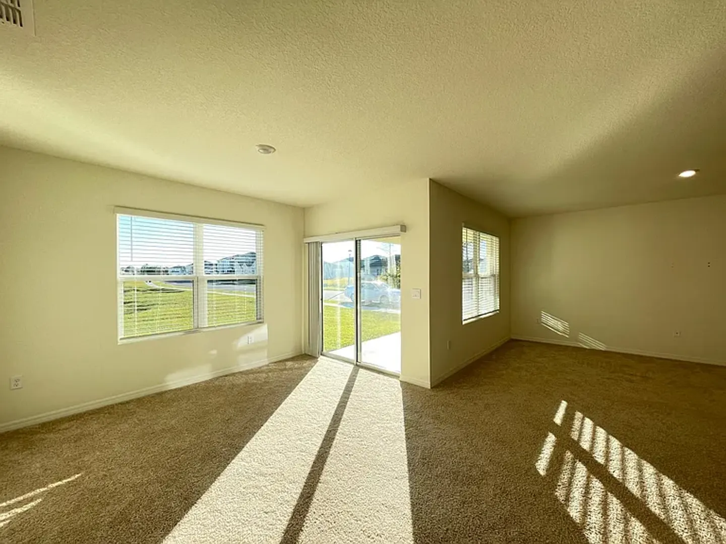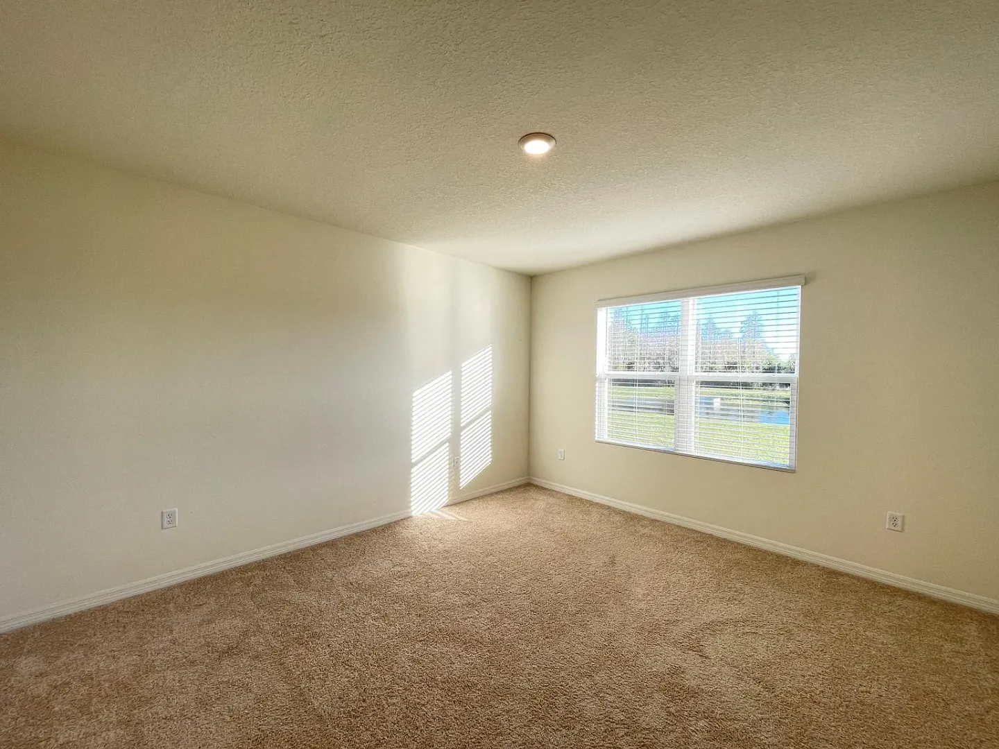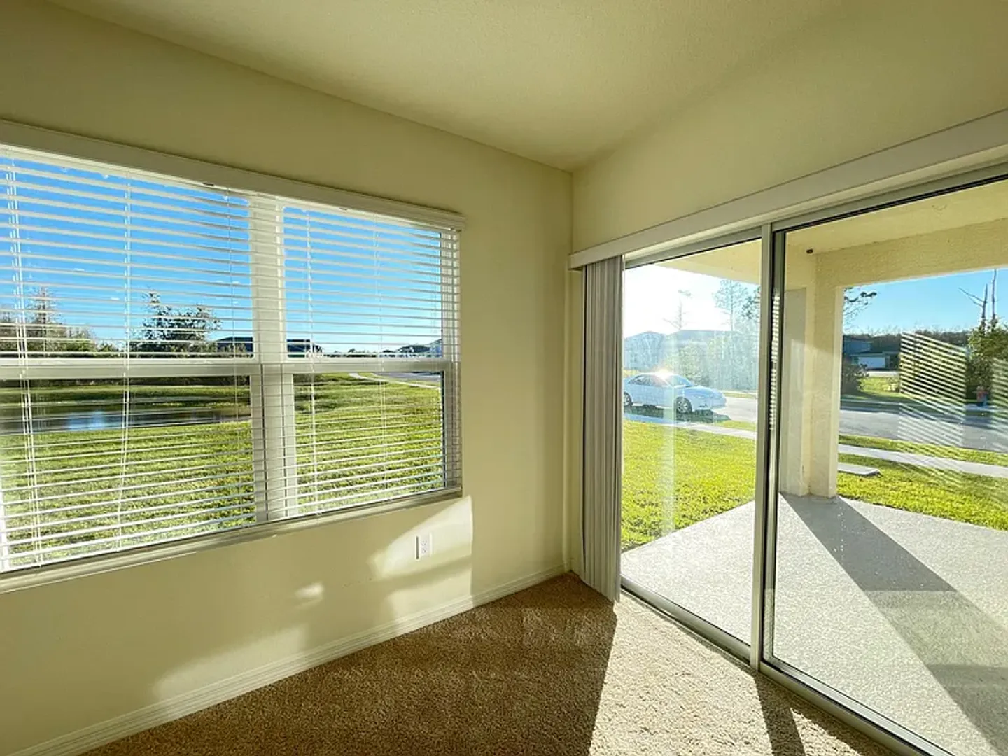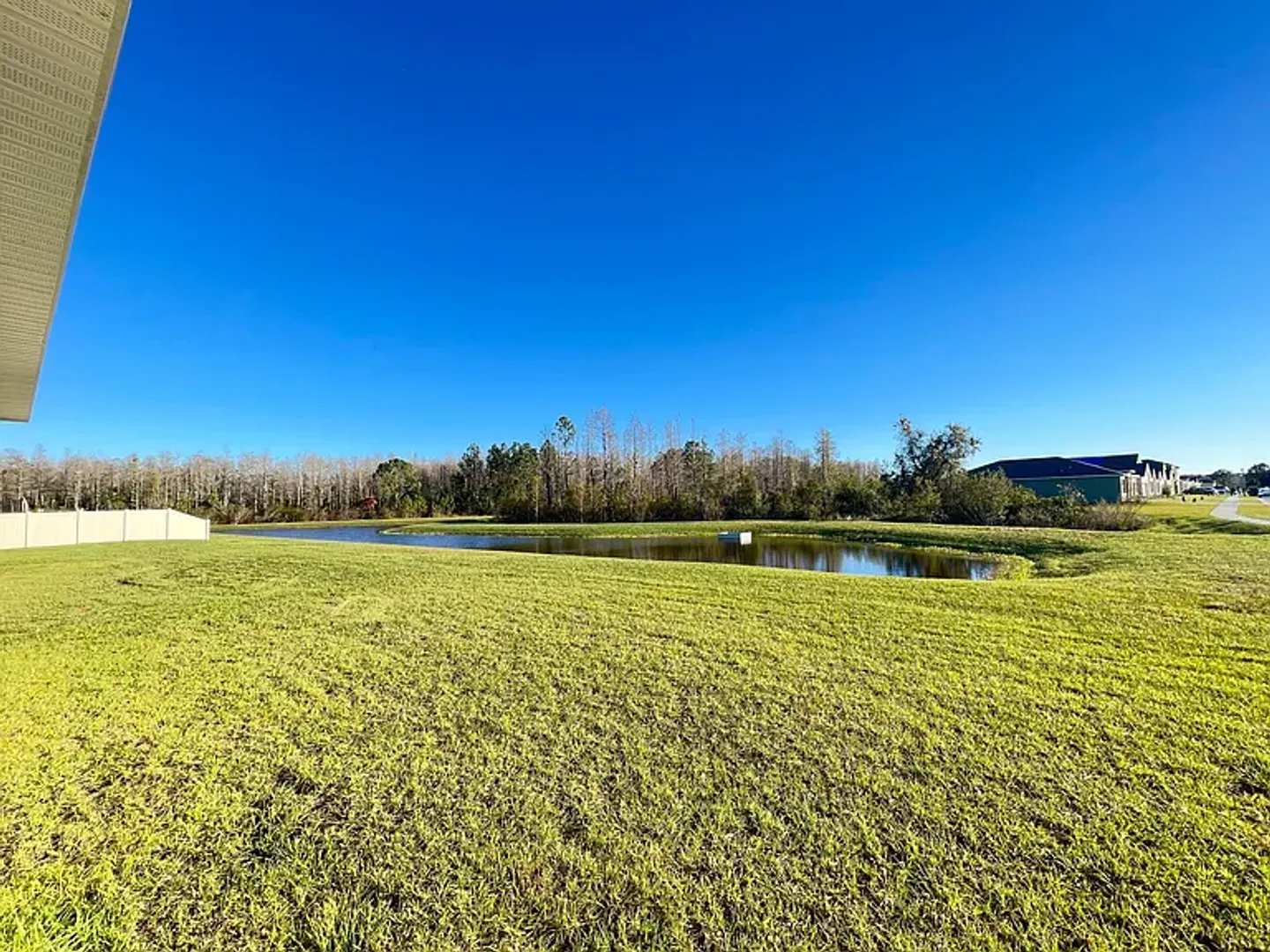 Waterview! Stunning 3 bedrooms and 2 bathrooms house is located at Four Corners. Just next to the Champions Gate and walking distance to Publix and restaurants. This house was built in 2022. Large 2-panel sliding glass doors lead out to overlook pond in the backyard. The home has carpet & tile flooring throughout, open concept eat-in kitchen boasting new stainless steel appliances, and a large island perfect for gatherings with family and friends. Retreat to the primary bedroom complete with a walk-in closet and en-suite bathroom with everything you need to relax and recharge after a long day. Nestled away just 25 minutes from all Orlando's attractions. The community features a clubhouse with a swimming pool and many more amenities. The washer/dryer are included. Tenants will be responsible for watering the grass and lawn cut, internet and utilities. Application fee is non-refundable.